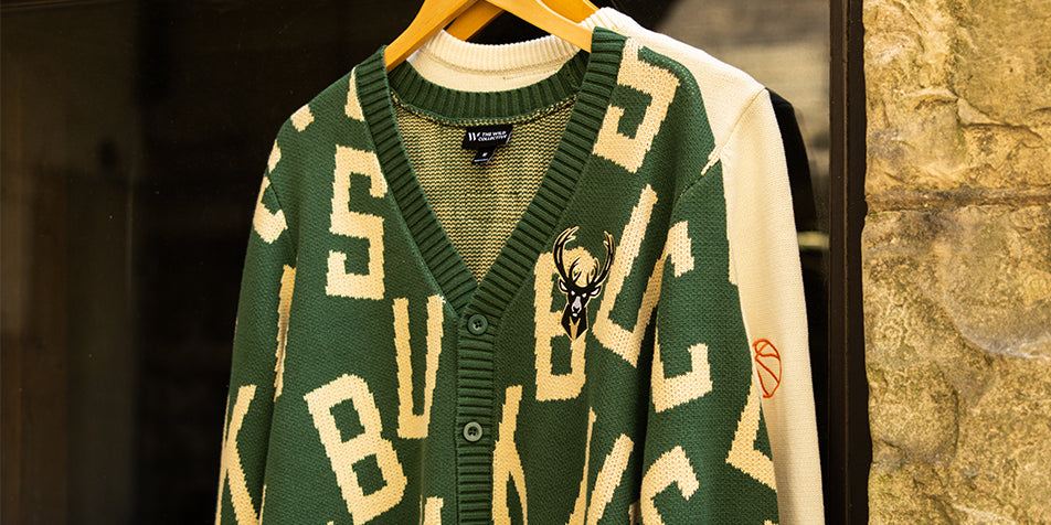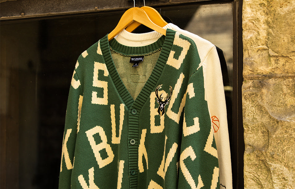 Bucks In Six x The Wild Collective Letter Scramble Milwaukee Bucks Button Cardigan